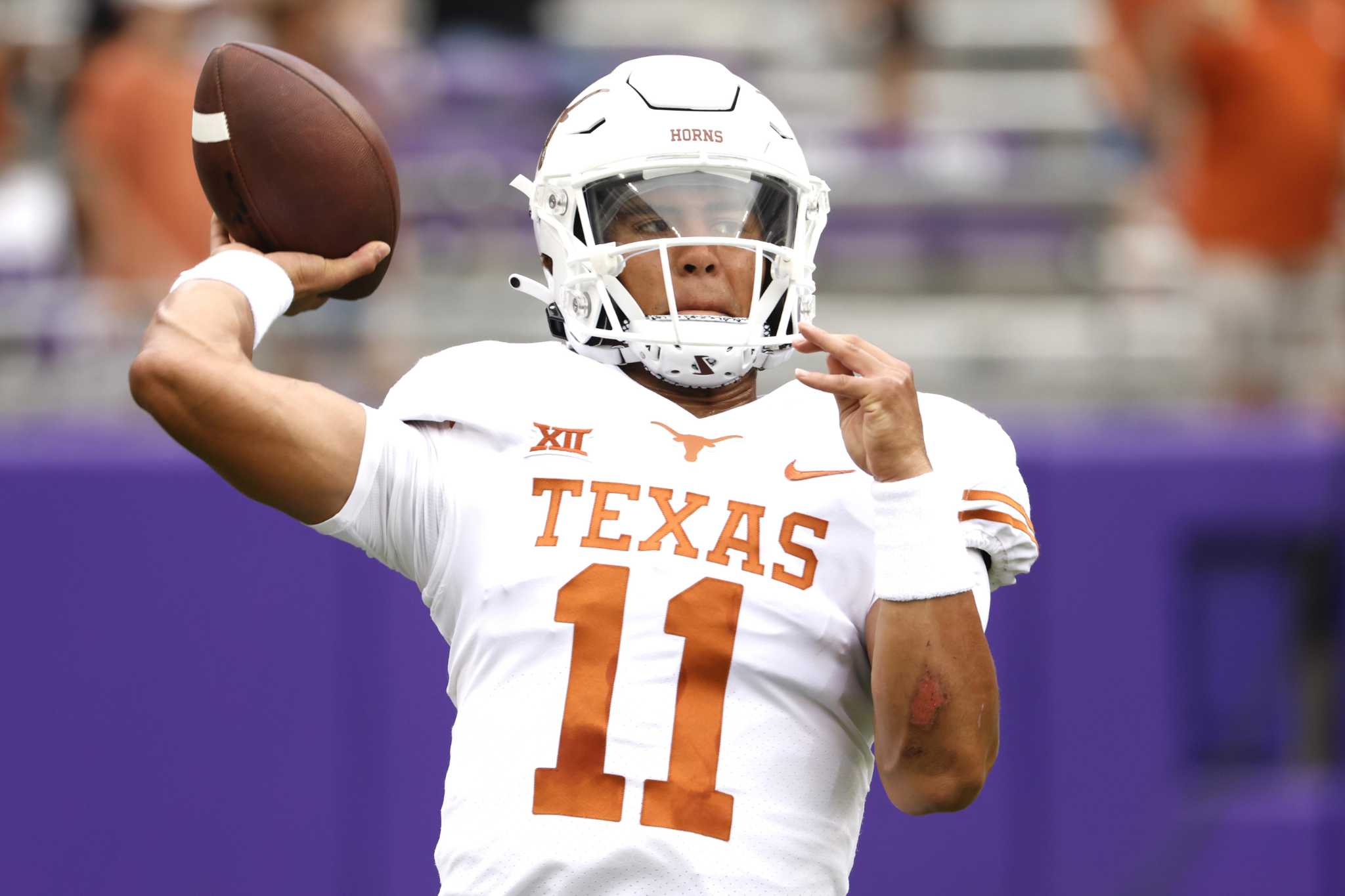 The contrast though will be equally vivid. Texas quarterback Casey Thompson 11 warms up before. Even at two months old the vibe Casey Thompson gave.