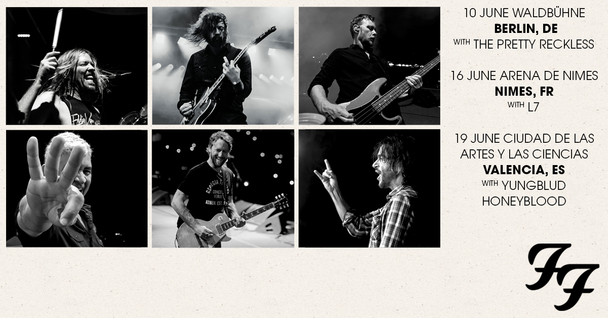 Foo Fighters On Twitter On Sale Now 10 June Berlin De Waldbuhne W Tprofficial Https T Co T70svoyhre 16 June Nimes Fr Festivaldenimes W L7officialhq Https T Co Eo7urqilwo 19 June Valencia Es Ciudad De